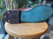 プレーントゥをダブルステッチストレートチップにしてソールをレザーソールに作り直しました。